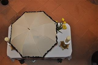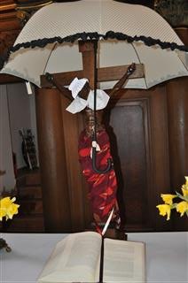 Völlig bestürzt nimmt eine Gruppe Clowninnen das Kreuz auf dem Altar wahr. Die nackte Gestalt leidet und der Schmerz spiegelt sich in ihren Gesichtern. Kann man denn gar nichts tun? Wortlos, nur mit Blicken und Tönen verständigen sie sich. So kommt es, dass der Schirm über dem Kreuz aufgespannt, eine Tuch um die Schultern gelegt, ein Häubchen aufgesetzt und ein größeres Tuch um die Hüften gewickelt wird. Diese Clowninnen betraten die Kirche neugierig, unvoreingenommen und voller Naivität. Sie kennen das Kreuz aus sehr vielen Kirchen, sie kennen Kreuzestheologien, sie wissen, was Karfreitag bedeutet und freuen sich auf Ostern. Aber als Clowninnen wissen sie und wissen doch nicht. Vielmehr lassen sie sich von der Gestalt selbst, ihrem Ausdruck, den Nägeln, dem Holzkreuz beeindrucken. Sie reagieren emotional, direkt, mit ihren Sinnen - so, als hätten sie so eine Darstellung noch nie gesehen: Geschockt, bestürzt, entsetzt. Im Unterschied zu Kindern oder Menschen ohne christlich-kirchliche Sozialisation befinden sie sich nicht mehr in einer ersten, sondern in einer zweiten Naivität. Das bewirkt die rote Nase und die ganze Haltung als Clownin. Sieht man nur diese Verhüllungen, ohne die besorgten Clowninnen, könnte es einem wir Spott vorkommen. Tatsächlich ist das Kreuz zuallererst ein Spottzeichen. In den biblischen Passionserzählungen machen sich so gut wie alle Beteiligten über den Gekreuzigten lustig. "Die vorüberkommenden Menschen schüttelten verächtlich ihre Köpfe und verunglimpften ihn: »Du reißt doch den Tempel ab und baust ihn in drei Tagen wieder auf, rette dich selbst, wenn du Gottes Kind bist und steige vom Kreuz herab.« Ebenso verhöhnten ihn auch die Hohenpriester samt den toragelehrten Männern und Frauen und den Ältesten: »Andere hat er gerettet, sich selbst kann er nicht retten. Er ist der König Israels? Soll er doch vom Kreuz herabsteigen und wir wollen ihm vertrauen." (Matthäus 27, 40-43) Die erste Kreuzesdarstellung ist dann ein karikierendes Kreuz, mit dem die ersten Christen im 2. Jahrhundert verspottet werden, weil sie so einen schwachen, absolut nur menschlichen Gott anbeten. Die Wand einer römischen Kaserne zeigt einen krakeligen gekreuzigten Esel und einen Mensch names Alexamenos, der ihn anbetet. Der Spott gilt beiden, diesem ohnmächtigen Gott und seinem Anbeter. Das Bild und ein weiterer Text dazu in diesem blog. Kreuz und Spott - diese Verbindung vom Anfang bleibt dem Christentum bis heute. Der Tübinger Theologe Karl-Josef Kuschel sagt dazu: In keiner der großen Religionen stehen „der Glaube und der Spott so direkt nebeneinander wie im Christentum“. Und so ist der christliche Glaube auch stets gefährdet, weil er sich durch Häme, Spott und Witz hindurch zu behaupten hat. „Billiger ist er nicht zu haben. Die Anfechtung folgt ihm wie ein Schatten. Der Spott über einen so ‚unmöglichen‘ Glauben – er wird Christen von Anfang an mitgegeben“ (Kuschel, Lachen. Gottes und der Menschen Kunst. Freiburg i.Br. 1994, 140f.). Die Clowninnen spotten nicht. Sie sind berührt und sie wollen berühren. Sie haben das dringende Bedürfnis zu heilen. Ich meine, das ist eine sehr gute, wenn nicht überhaupt die beste Art, auf das Kreuz zu reagieren. Denn es gibt viel zu viele Kreuze und andere Foltermethoden auf dieser Welt. Aber dazu muss man es erst einmal wieder wahrnehmen, dieses Kreuz, als Spottzeichen und als Skandal. Manchmal ist die zweite Naivität eben klüger als die erste. Und, ja, billig ist es gewiss nicht, sich mit dem Kreuz auseinanderzusetzen.